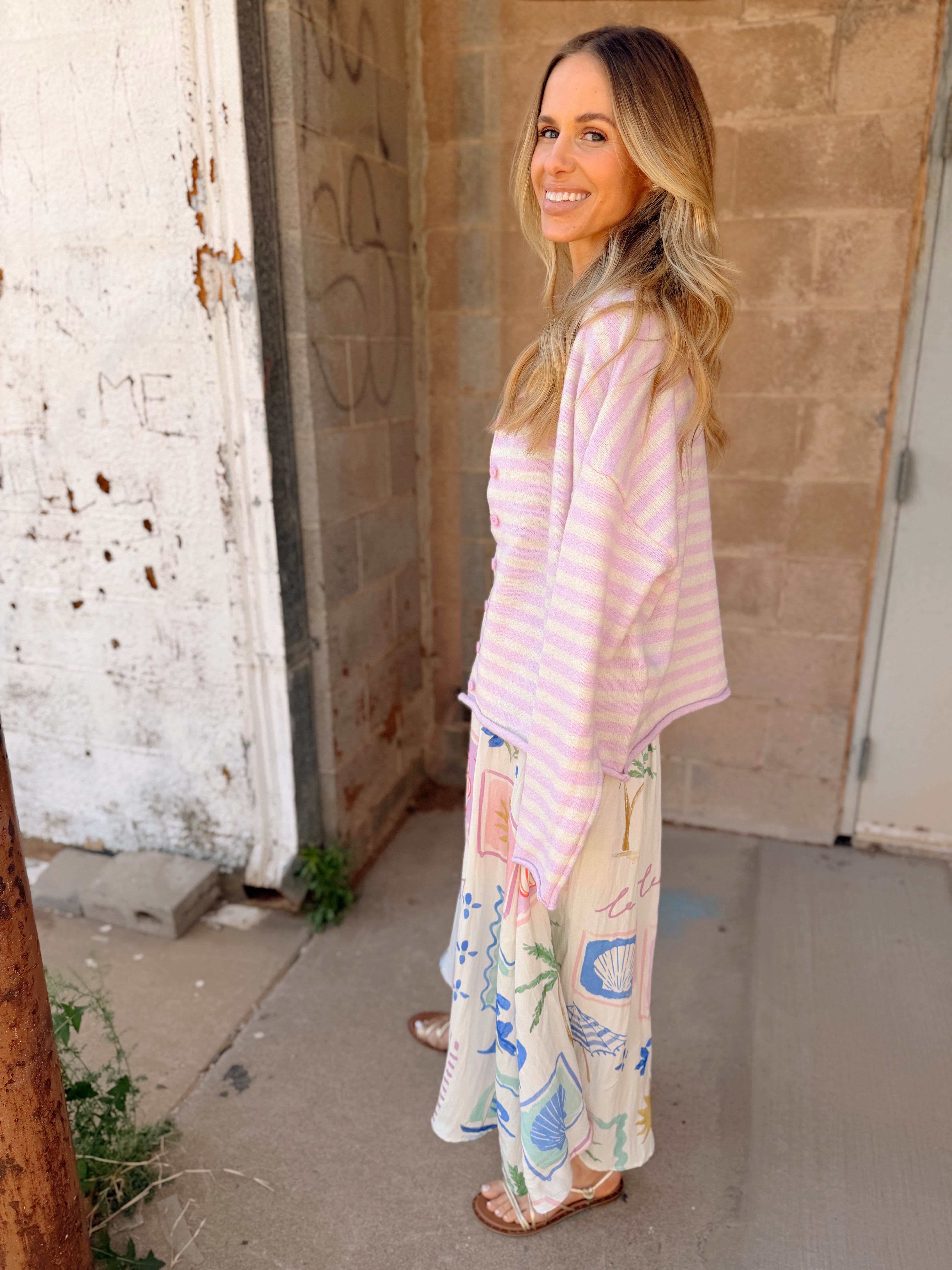 The Ciela Cardigan Sweater in Lavender Pink by By Together is the kind of cozy layer that instantly softens your look. Relaxed and comfortable with an easy, slightly oversized fit, it has that effortless feel while still looking polished and intentional. The soft lavender pink hue adds a feminine touch that feels fresh without being too bold, making it perfect for layering on cooler days.