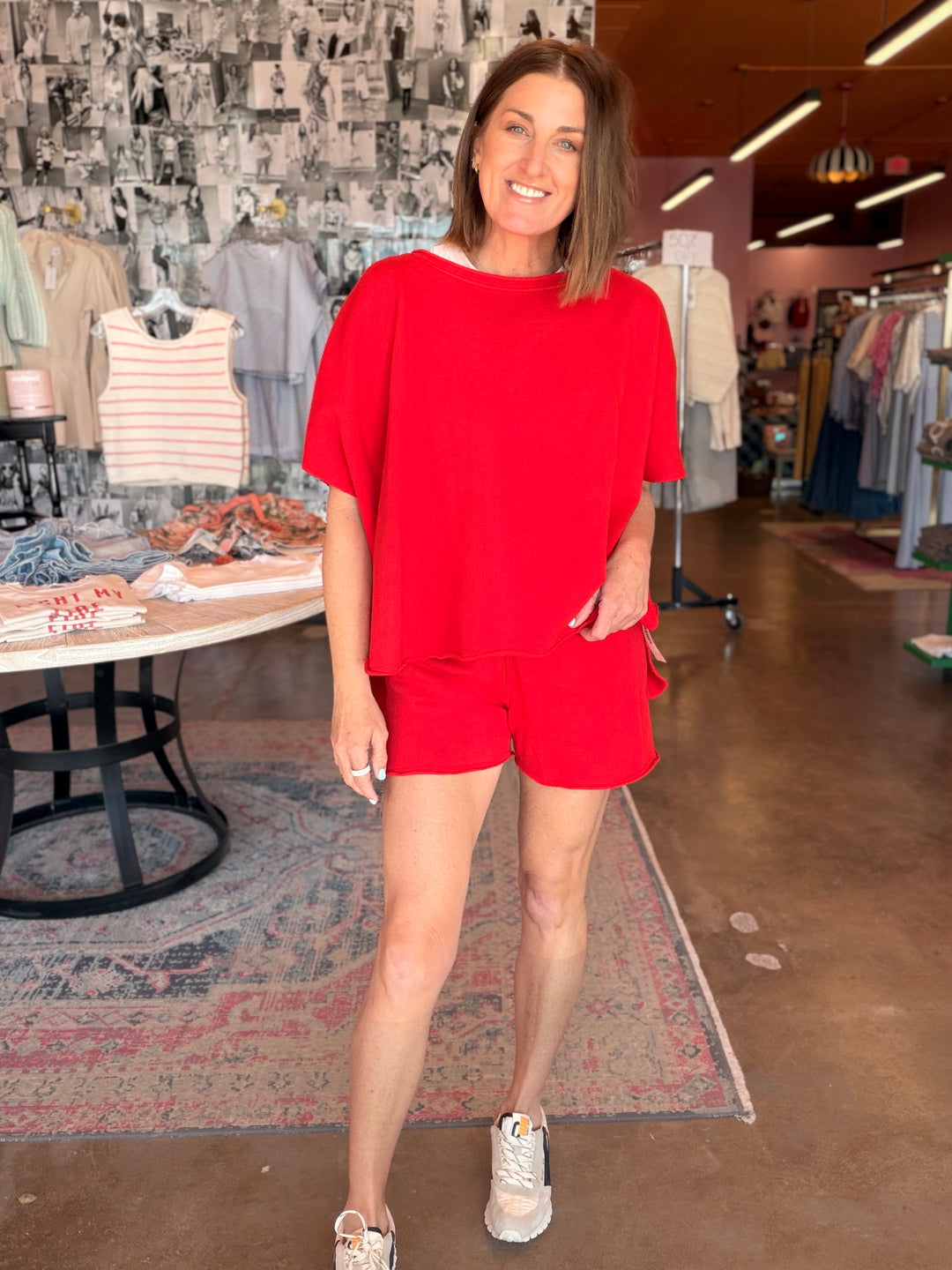 Malibu Vintage Edge Mid-Rise Shorts - Cherry