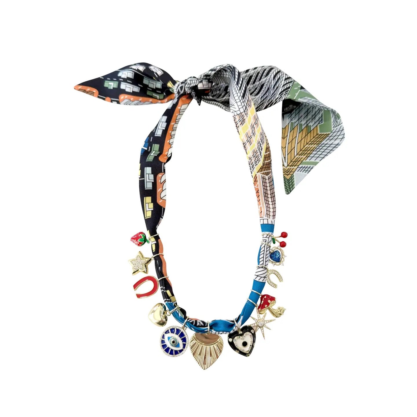 MCS Bubble Scarf Necklace | Red/Blue Print