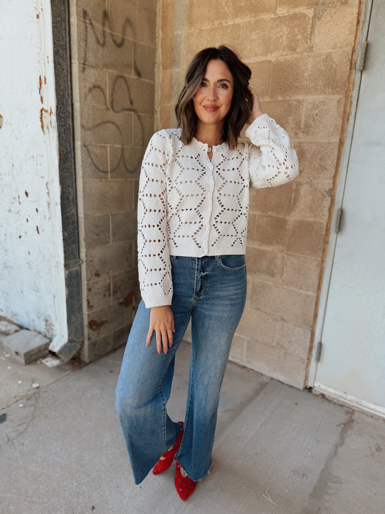 denim fit true to size. Court is wearing the 26 and Alyssa is wearing the 27