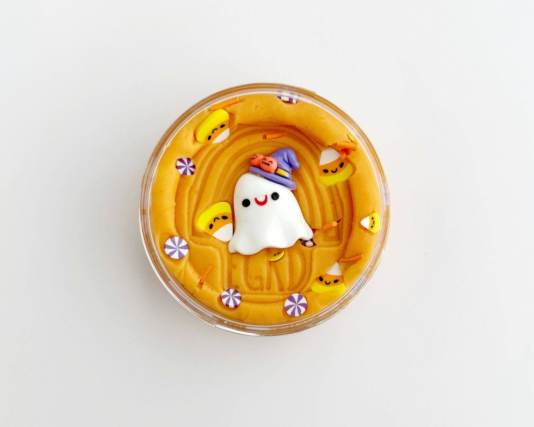 Includes: 4 oz Light Orange (Pumpkin Cupcake) KidDough, Smiling Candy Corn and Swirly Candy Fimo Mix, Happy Ghost Charm