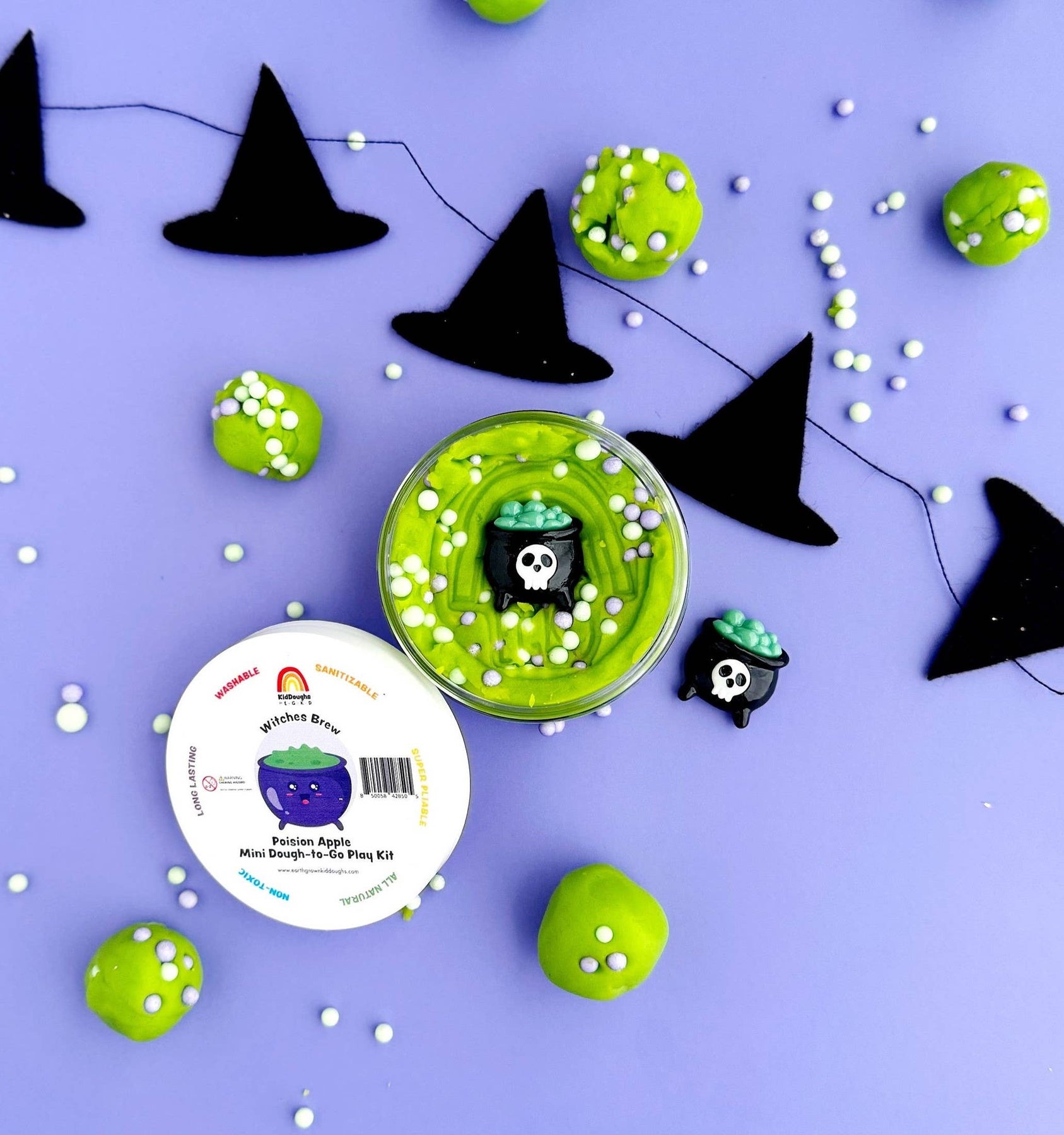 Cast a spooky Halloween spell with the Witches Brew KidDough! Our Award-Winning line of Sensory KidDoughs come in an array of mouthwatering scents with options for fun glitters, fimos, and add-ins! Fall into Halloween Fun with EGKD! Includes: 4 oz Bright Green (Poison Apple) KidDough, Multi-Color Sensory Balls, Cauldron Charm Our super silky sensory doughs are buildable like a modeling compound but are softer, more pliable, and far longer lasting than any you have tried before! Every all-natural KidDough is made with non-toxic food grade ingredients and is totally taste safe. These super durable doughs last for at least 120 hours of active airtime and easily wash out of carpets and fabric with just warm water. If ever you experience drying, just knead to rehydrate. KidDough is the best way to play dough! This KidDough is recommended for Ages 3+ Scent: Apple Ingredients: Wheat Flour, Salt, Canola Oil, Cream of Tartar, Water, Food Coloring, Organic Potassium Sorbate, and Fragrance
