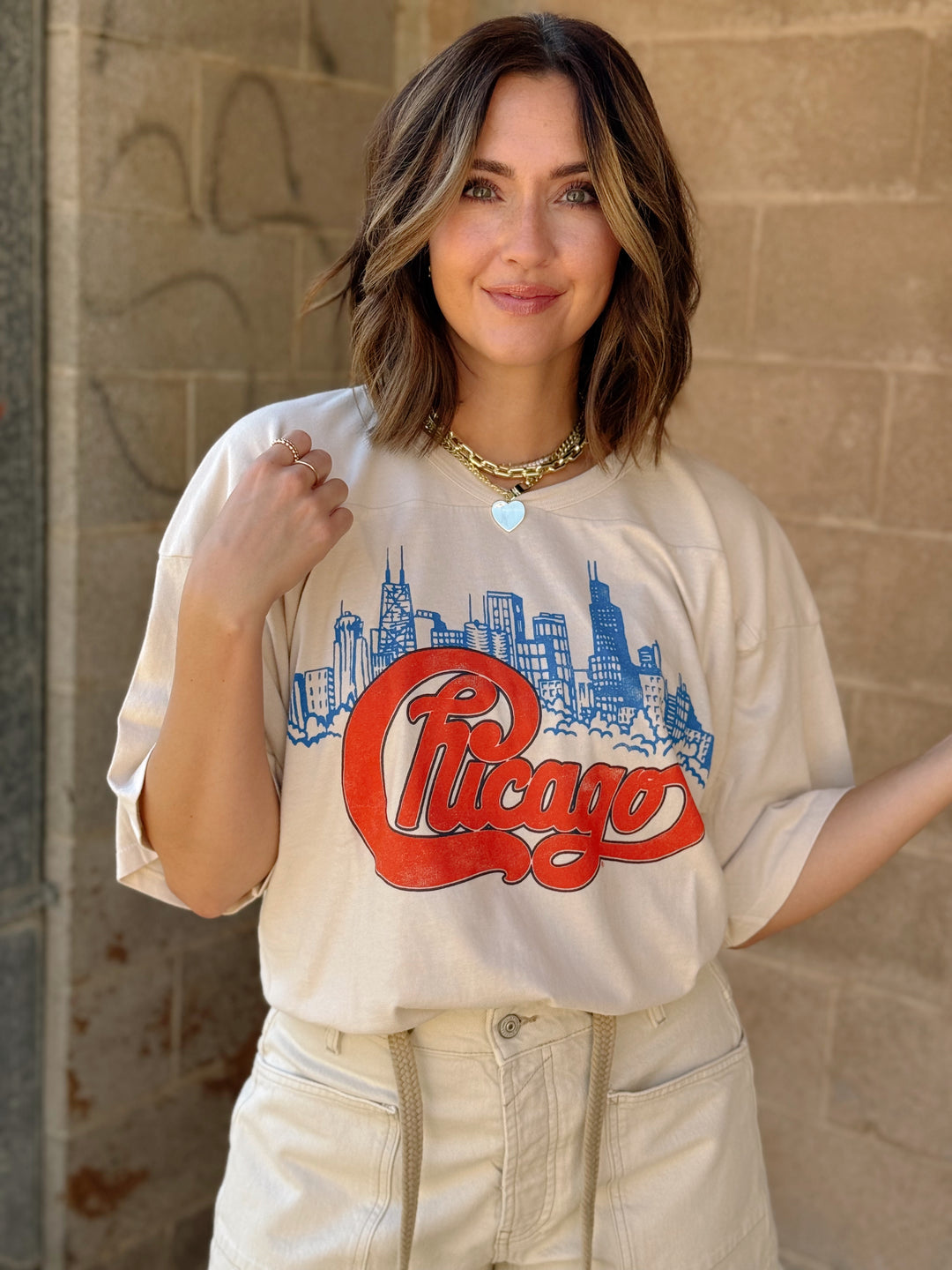Daydreamer | Chicago Skyline Oversized Jersey - Dirty White