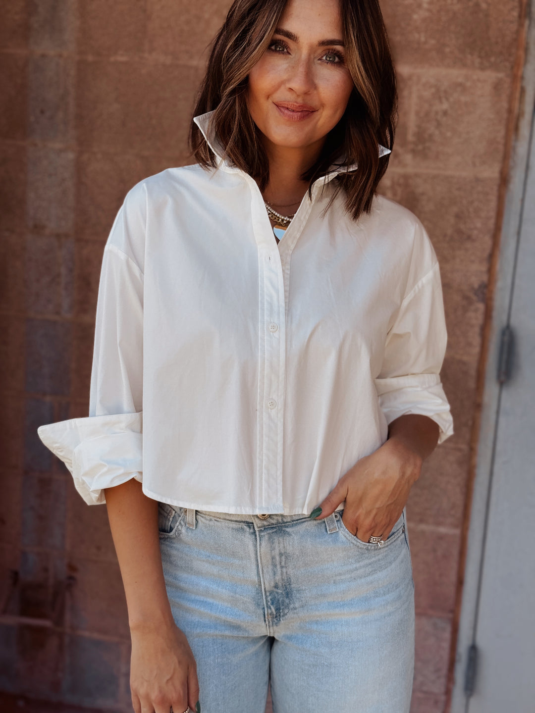 Cropped Button Down Shirt - White