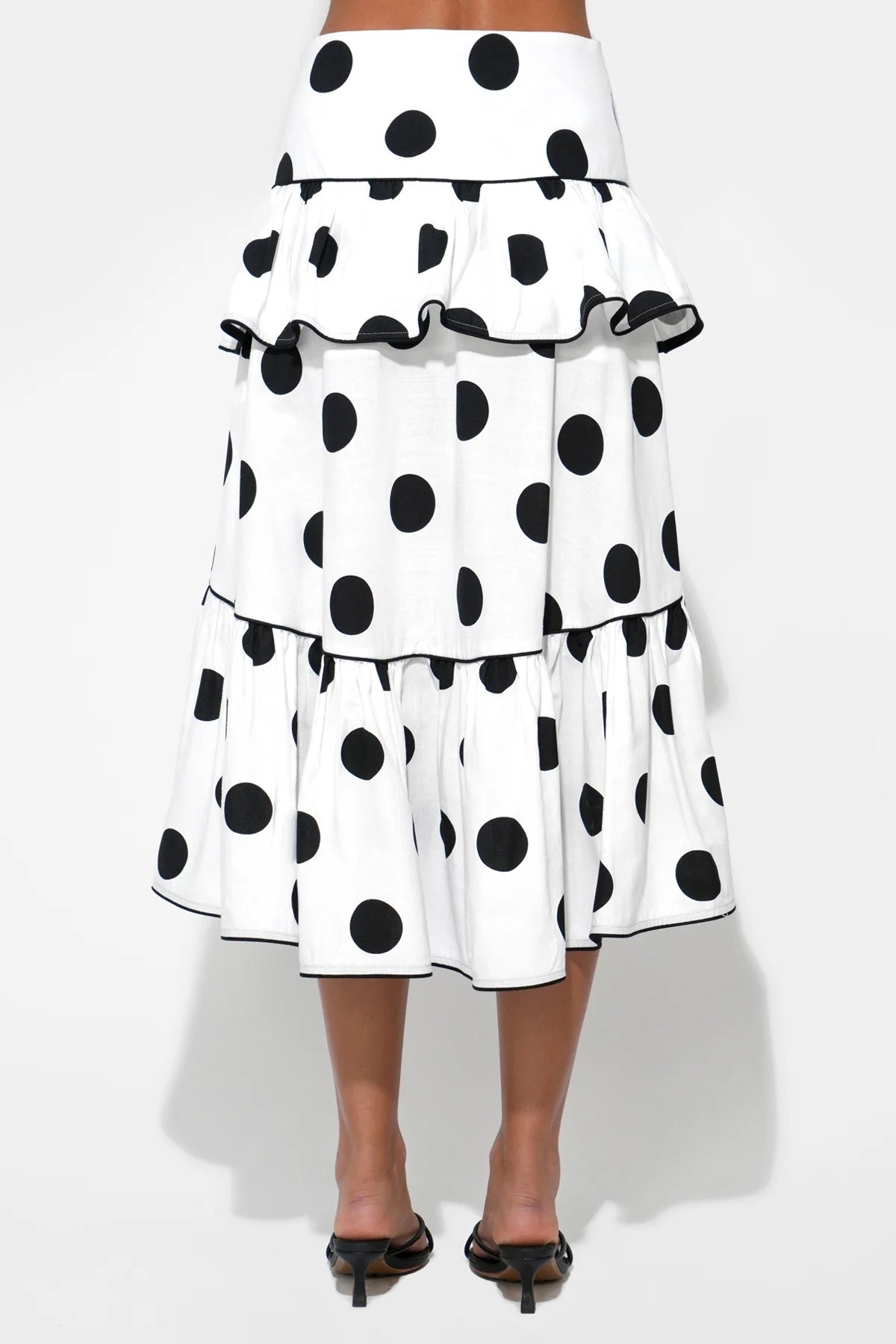 Adelyn Rae | Aaliyah Layered Ruffle Linen Dot Skirt - White/Black