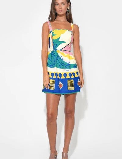 Adelyn Rae | Reese Printed Mini Dress - Yellow/Blue
