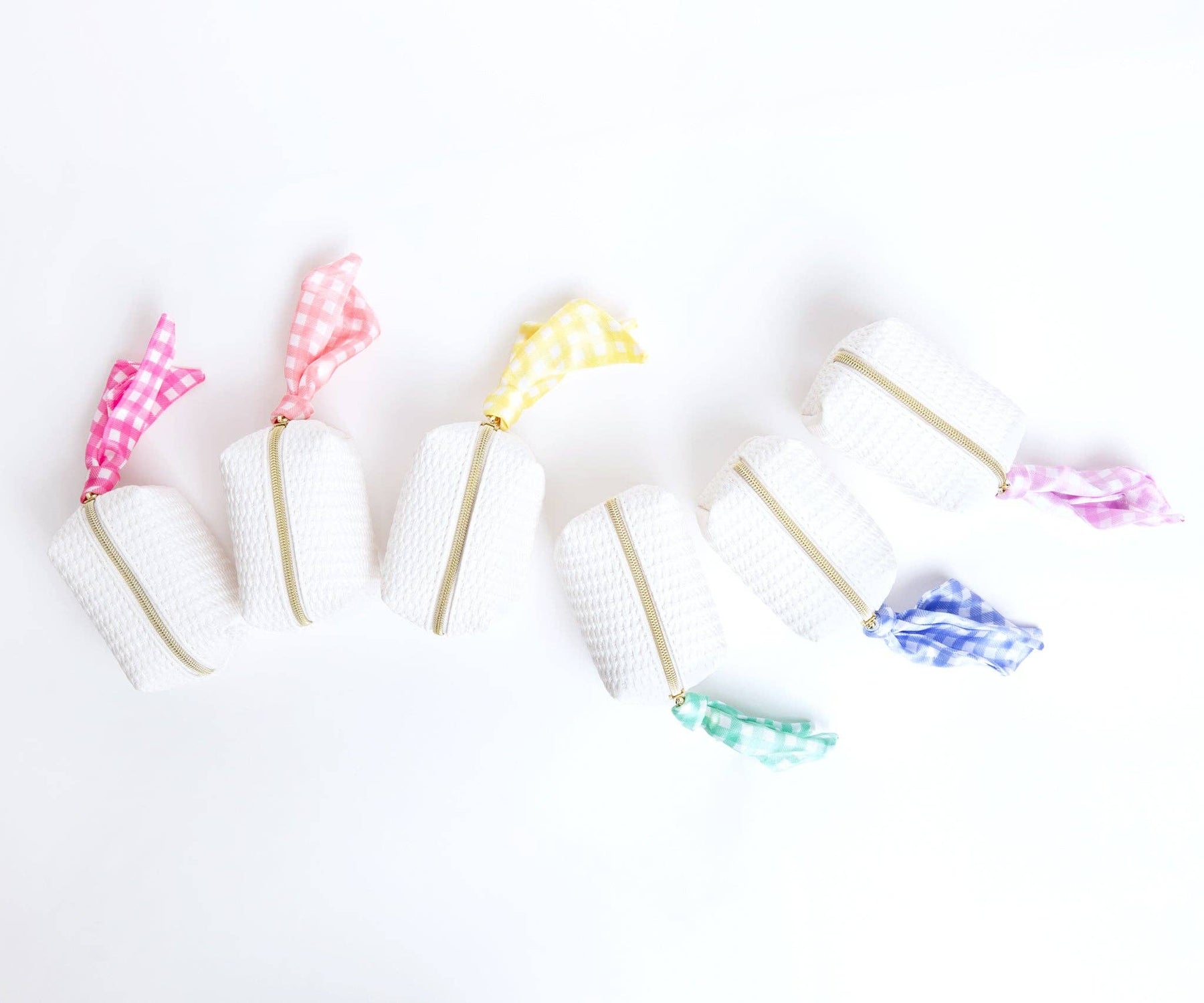 Check these out! Our new Minimergency Kits feature darling gingham scarves in every color of the rainbow. With 17 beauty, personal care, and style essentials, each white basketweave pouch contains everything a gal needs...IN A PINCH®!