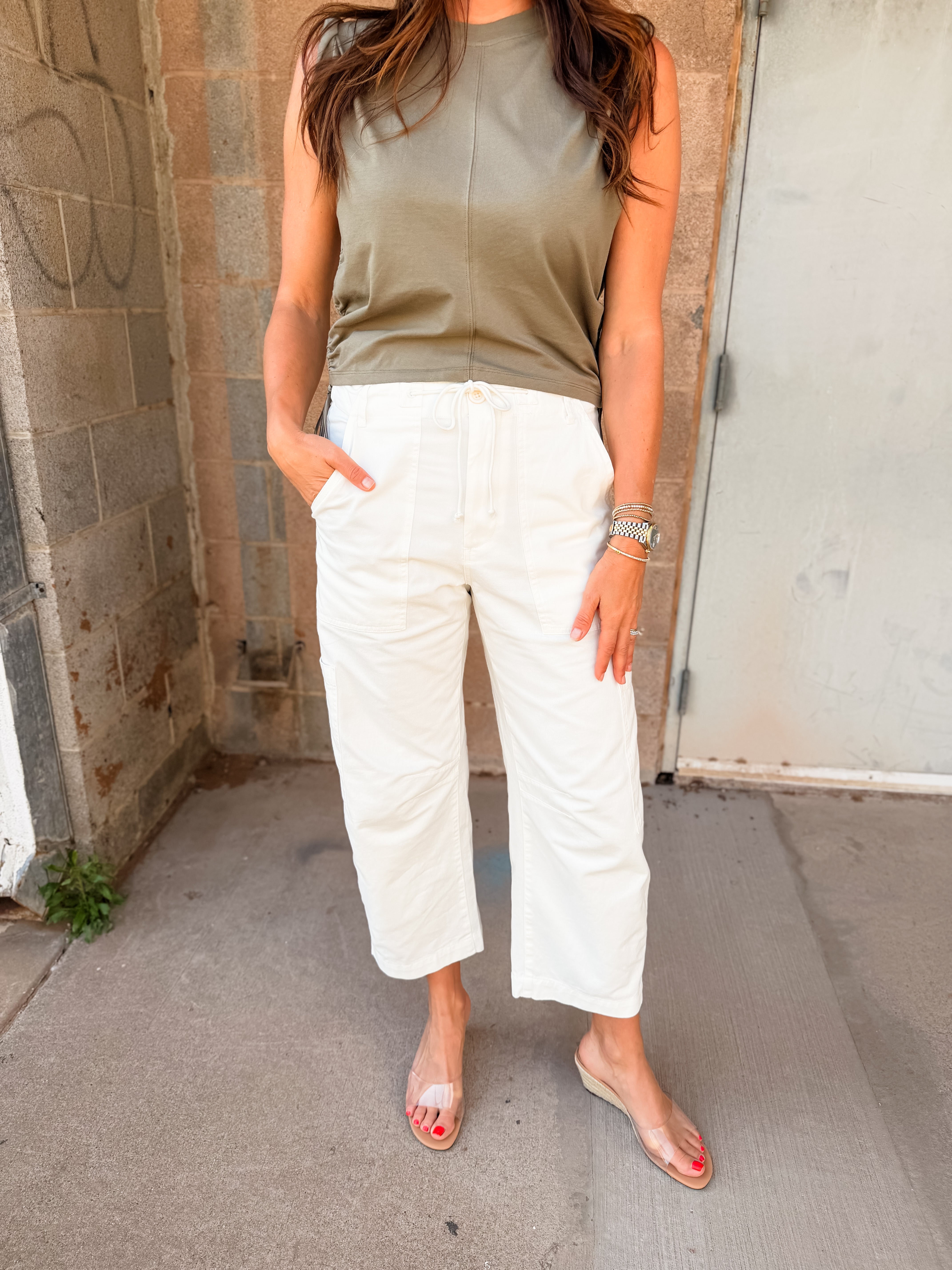 The Sabrina Curved Utility Pant in White by Pistola is the kind of statement denim that still feels easy to wear. With a flattering high-rise fit and a subtle curved leg, it gives you that modern, structured look while still feeling comfortable and effortless. The crisp white color keeps it fresh and elevated, making it perfect for days when you want your outfit to feel a little more intentional without trying too hard.